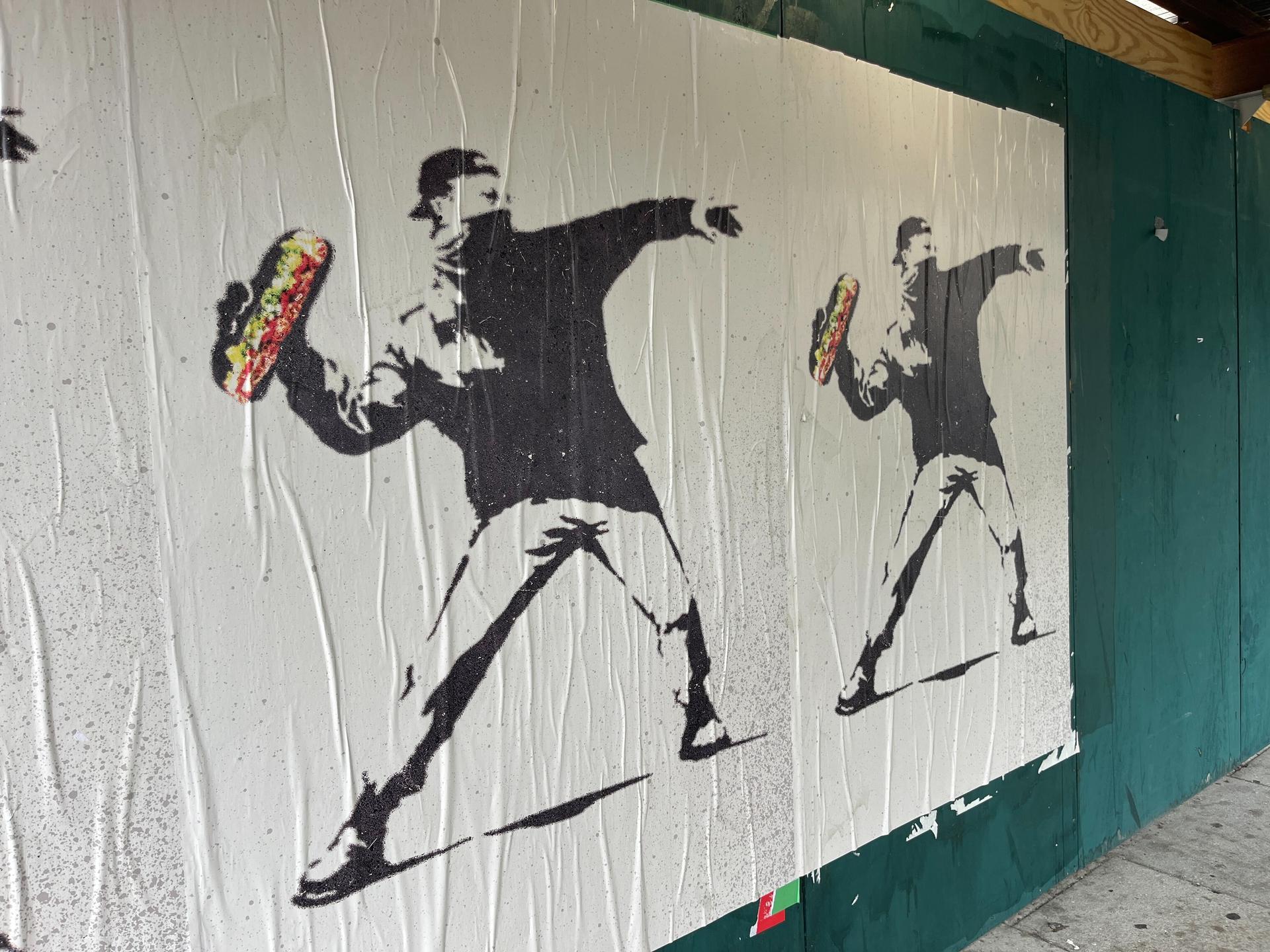 Subway slinger Sean Charles Dunn might have been fired by Pam Bondi but he lives on in this Banksy-style work near DuPont Circle as well as Adam’s Morgan. |